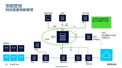 诺基亚策略控制器 产品简介 诺基亚策略控制器 为4G和5G扩展策略管理移动网络中的Nokia Policy Controller (NPC)决定了可用于支持连接设备的资源和服务。它是确保现代语音和数据服务的客户体验的重要组成部分。例如,它可以确定客户是否订阅了4G或5G服务,他们的数据分配,他们是固定用户还是移动用户,甚至他们可能通过运营商订阅了什么娱乐服务。 什么是诺基亚策略控制器? 云原生诺基亚策略控制器是一个组合的可扩展网络功能,实现5G策略规则和与4G的互操作性,具有独立可扩展的子功能。基于微服务的无状态网络功能具有服务4G Diameter和5G HTTP/2基于服务架构的接口。诺基亚的策略控制器是专为5G和物联网的需求而设计的,即使是最复杂的用例也能提供规模和简单性。它完全是云原生的,可以快速部署到多供应商网络中,并提供高效和有效的策略控制所需的弹性和可靠性。如今,全球有近100家服务提供商依赖诺基亚的5G、4G和固定网络策略管理能力,为5G做好了生产准备。网络架构提供平稳的5G演进。 诺基亚策略控制器是如何工作的? 基于单个用户的策略控制。5G可以支持比4G/LTE网络更多的业务更广泛的设备和用例也带来了更复杂的策略规则。5G政策控制系统必须高度灵活和敏捷,才能大规模管理这种复杂性。灵活的政策管理对于新5G服务的货币化至关重要在过去几年中,策略管理的角色发生了巨大的变化,导致了更复杂的规则,显然需要更好的规则引擎 策略控制功能的好处是什么? 全面的功能 通过一组经过现场验证的全面功能,解决了广泛的用例 自动化 通过DevOps工具持续交付 集成 易于网络集成与内置的直径操作 灵活性 创建规则不依赖于固定的规则表时间表支持的A.R.T规则系统,包括150+专利 与4G的互操作性 提供一体化的PCRF (4G) +PCF (5G),但也支持单独部署 服务管理 服务平台的GUI和API功能,用于与CRM等系统交互 不同的部署 专为多供应商安装和完全预集成与其他诺基亚解决方案以及 高性能和模块化 基于诺基亚的通用软件基础:更新的软件采购、开发和交付实践,以提高速度、质量和可服务性 如何利用策略管理提高4G和5G服务的交付? 与4G/LTE相比,5G明显扩展了网络支持的服务。没有任何用例可以在没有策略控制的情况下工作——消费者和企业的传统和尖端用例都需要灵活的策略控制功能。随着我们进入5G时代,许多新的用例将出现在工业4.0中,包括用于工业自动化的关键机器类型通信(cMTC),以及大规模物联网网络。这意味着,有了5G,设备和用例的范围更广,政策规则的复杂性也更高。